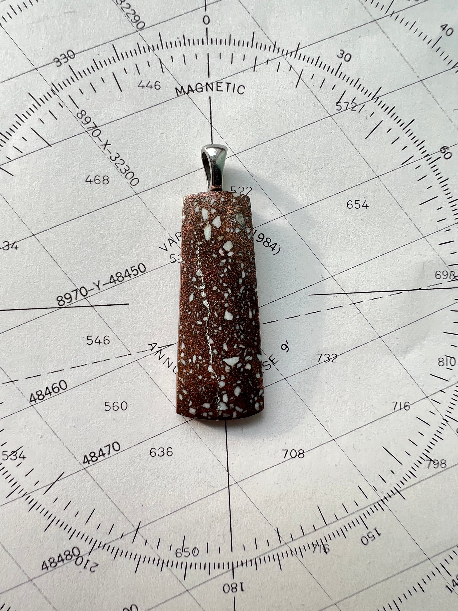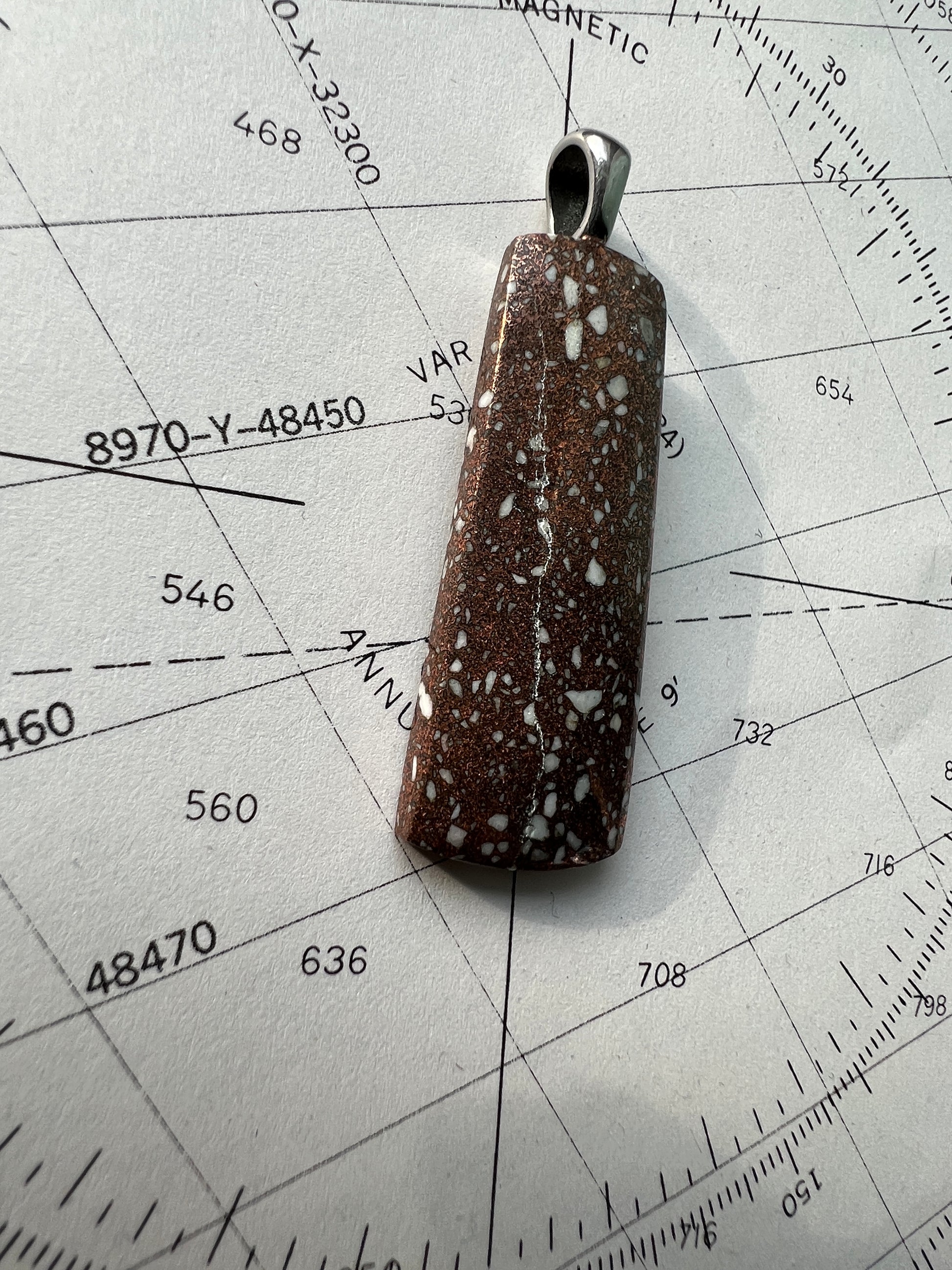 Michigan Firebrick stones are a by product of the old firebrick lining of the copper smelter smokestacks from the late 1800’s and early 1900’s. During copper processing the copper would stick to the fire brick walls of the smelter. This necklace features a rectangle shaped stone mounted on a stainless steel bail and an adjustable stainless steel chain (17-19.5”) with a lobster claw closure. The necklace will come in a gold colored gift box.