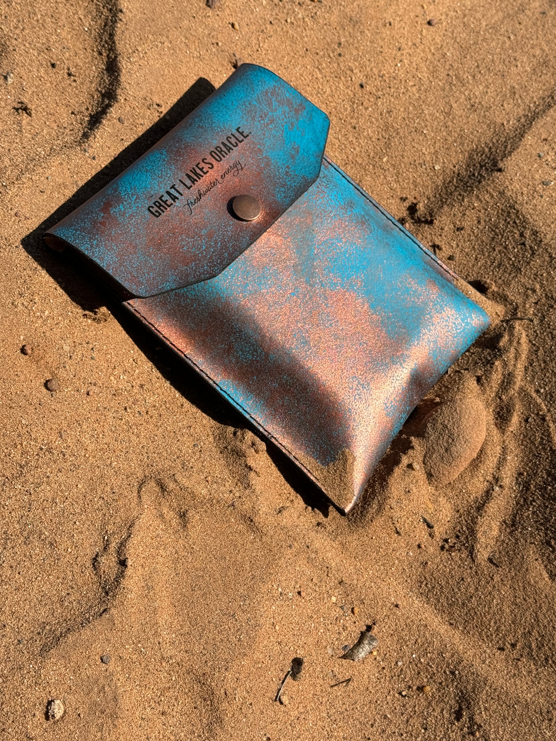 This leather envelope pocket is a collab with Dead Miners, a company that makes handmade goods & designs from the cold heart of Michigan’s Copper Country.