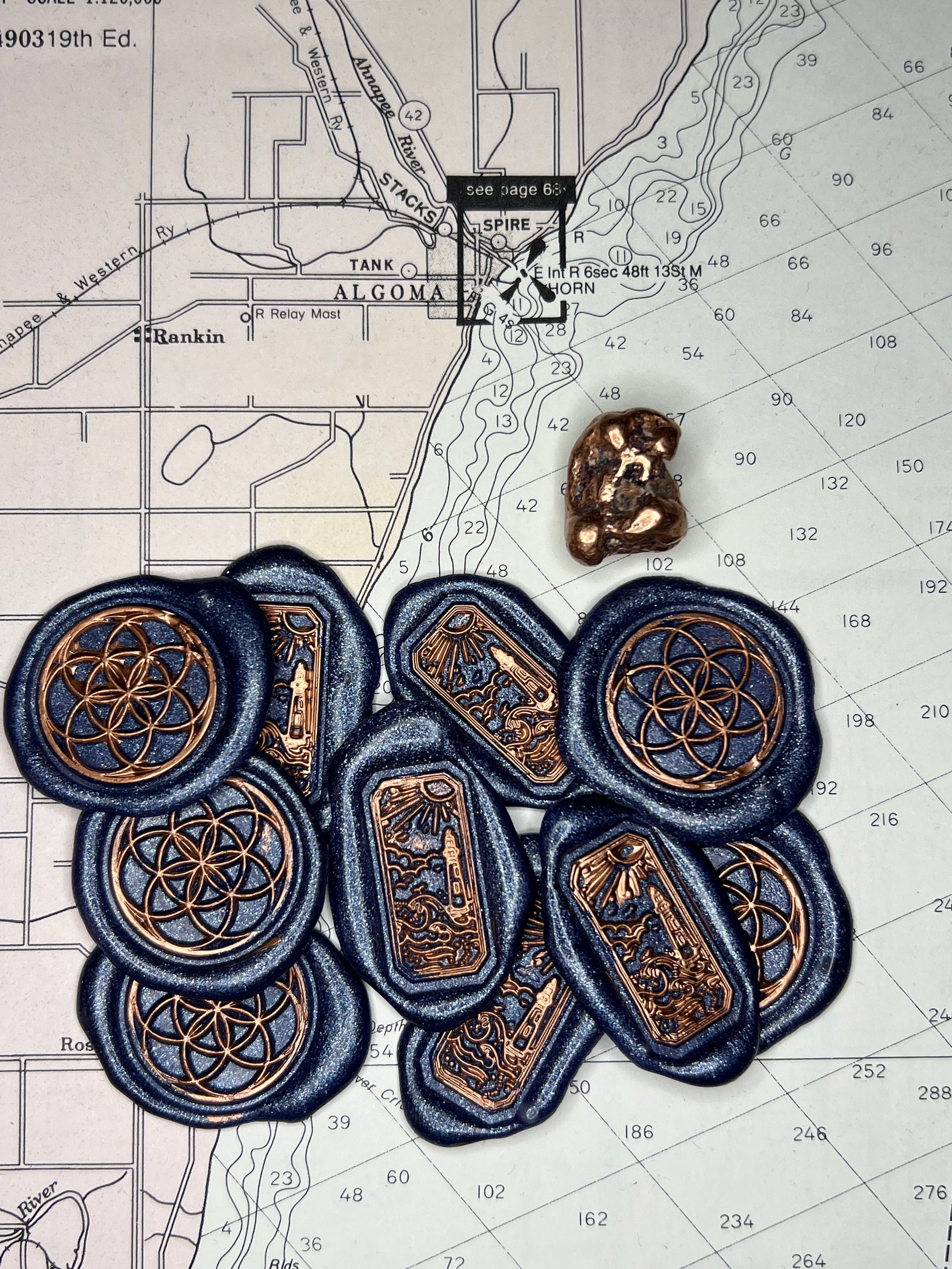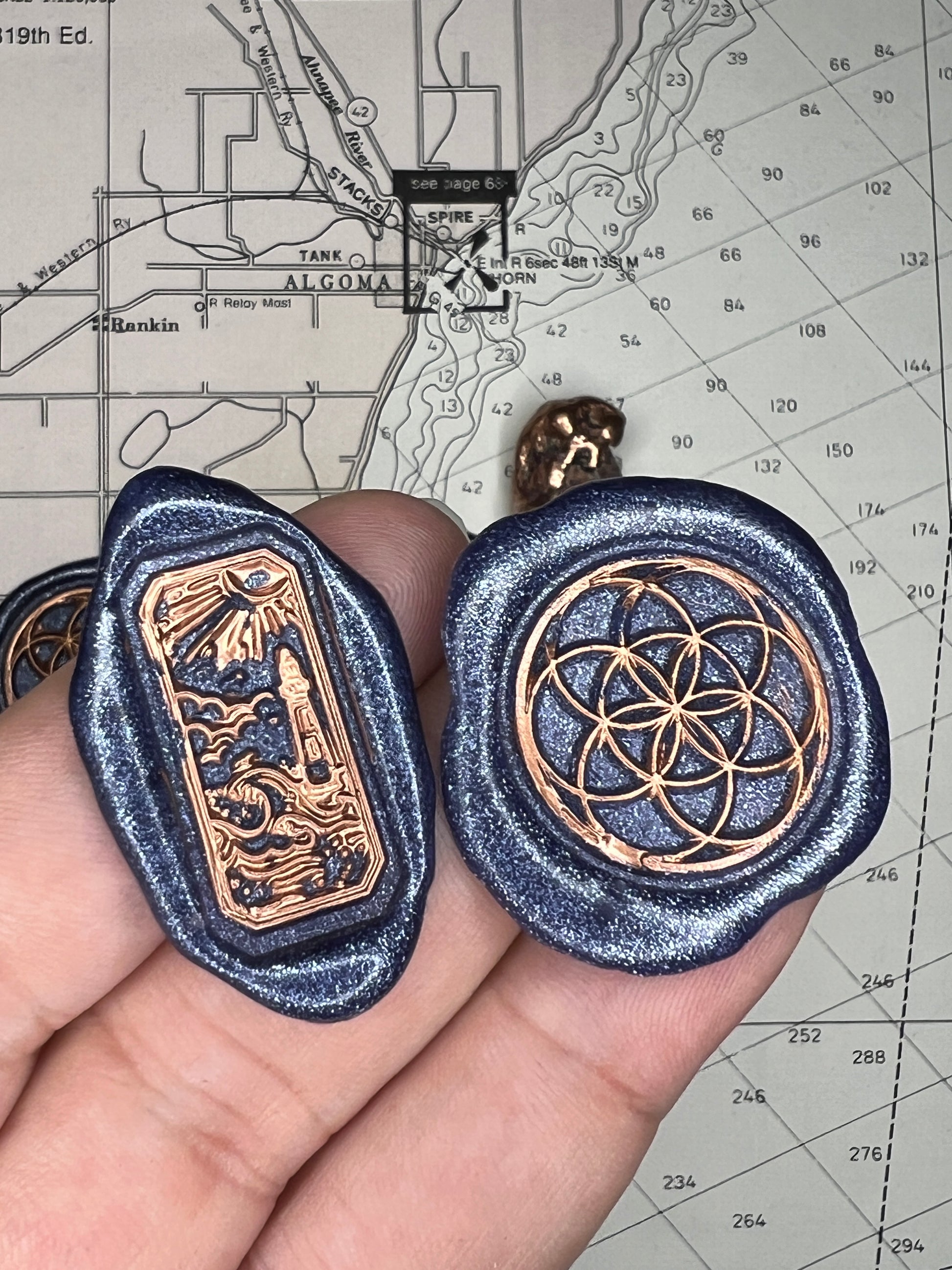 - Set of 5 wax seals in your choice of a lighthouse or seed of life design
